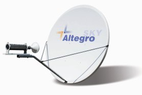 Антенны, используемые в сети AltegroSky, обеспечивают высокое качество связи. Все антенны имеют офсетное исполнение и пластиковые рефлекторы с водоотталкивающим покрытием, что препятствует налипанию снега. Антенны отлично зарекомендовали себя в самых суровых климатических условиях на территории России. В качестве опции на антенны можно устанавливать систему антиобледенения. Для комплектации МЗСС AltegroSky предлагает приемо-передающие антенные системы: - Кu-диапазон – диаметром 0,74 м, 1,2 м, 1,8 м (производство Prodelin, Raven) Для современных геостационарных спутников, имеющих точность удержания на орбите в пределах от 0,05° до 0,1°, нет необходимости в моторизованных приводах и системах слежения, поэтому для этого класса антенн применяются относительно простые основания и подвески. В зависимости от расположения и применения предлагаются различные варианты исполнения оснований (опор) антенн. Основания антенн могут быть для фиксированного наведения с установкой: - на стене здания – для антенн диаметром 1,2 м и менее; - на плоской поверхности (бетонная площадка, крыша здания) – для всех диаметров антенн. Модемы