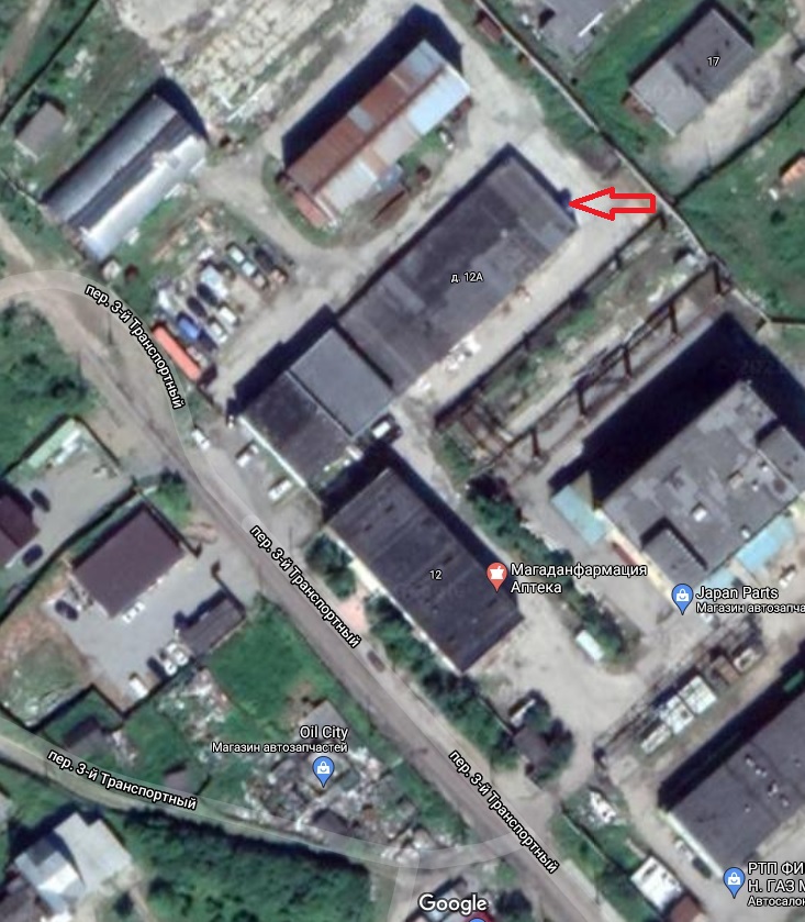 Уведомляем о том, что с 02 августа 2021 г. у нас изменится фактический адрес (местонахождение): г.Магадан, пер.3-й Транспортный, д.12А. Территориально это тот же район (территория так называемых "аптечных складов"), но в ином строении (бывший склад ООО "ТАРС", расположен выше административного здания ОГАУ). Проезд на территорию возможен как через ворота расположенные выше административного здания ОГАУ (и далее прямо практически до забора) или ниже него (и далее влево и вверх, потом направо и прямо практически до забора). Вход расположен с правого торца (обозначен стрелкой).
